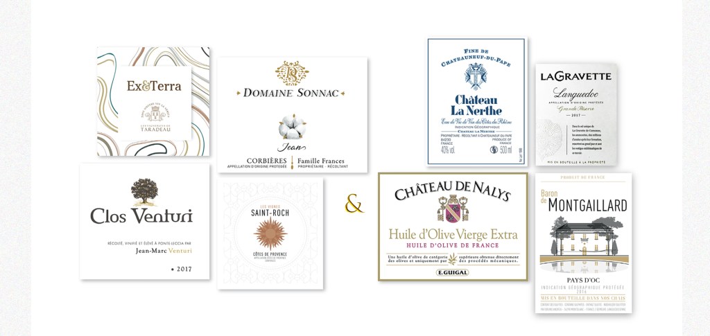Les Dorures, les illustrations, le nom de domaine, les appellations, le choix du papier… tous les détails signent ce savoir-faire d’une étiquette de vin.